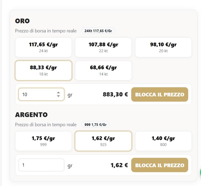 instantly calculate the price based on karat, fineness, and weight (grams),